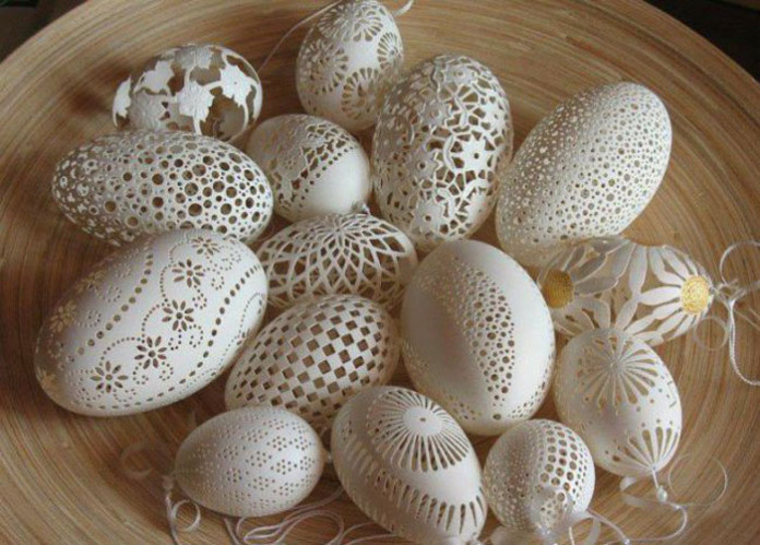 Создание произведения искусства – сложный процесс, а если речь идёт о яичной скорлупе, то он становится ещё и деликатным. Фрэнк Гром превращает яйца в прекрасные ажурные скульптуры, от которых невозможно оторвать взгляд. В каждом с помощью маленькой электродрели просверливается от 2500 до 17000 крошечных отверстий.